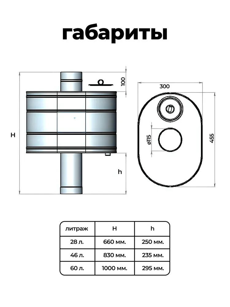 Бак для бани на трубе 60 л, d115, AISI 304 0,8 мм, МП - 1 шт.; Крышка бака - 1 шт.