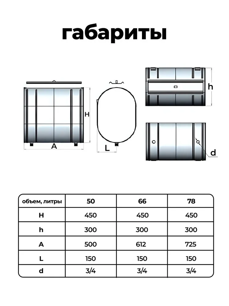Бак оснащен двумя штуцерами 3/4. Легко устанавливается и подходит для различных типов банных печей.