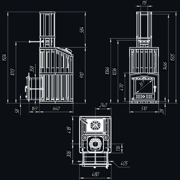 Габариты топочной части, (ДхШхВ) мм: 455х341х595
