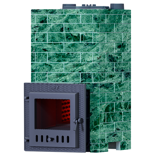 GFS ЗК 18 - печь с усиленной каменкой большей массы, с единым углублением внутрь топки для дополнительной укладки чугунного заряда. Теплосъемные шипы, со стороны горения пламени, в разы увеличивают площадь соприкосновения огня с каменкой и ускоряют передачу тепла, а также способствуют лучшему дожигу смешивая потоки пламени и воздуха поступаемого из воздушника. Эти усовершенствования значительно повышают мощность парообразования печи и выдают большее количество пара при непрерывной подаче воды. Каменка печей GFS-ЗК является незаливаемой.