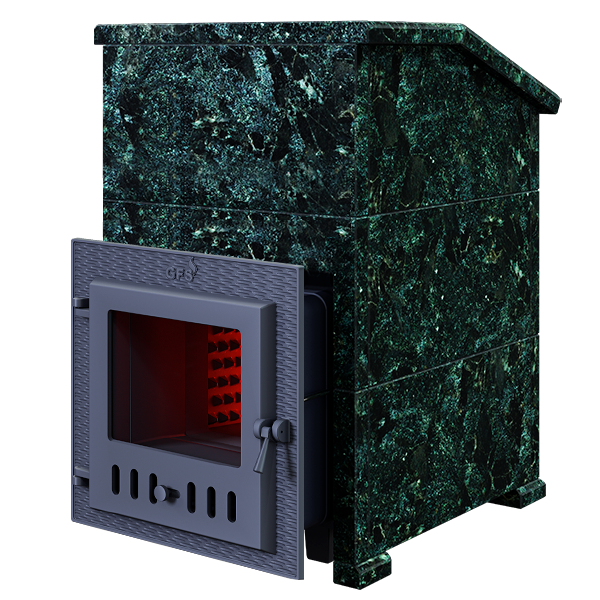 GFS ЗК 18 (М) - печь с усиленной каменкой большей массы, с единым углублением внутрь топки для дополнительной укладки чугунного заряда. Теплосъемные шипы, со стороны горения пламени, в разы увеличивают площадь соприкосновения огня с каменкой и ускоряют передачу тепла, а также способствуют лучшему дожигу смешивая потоки пламени и воздуха поступаемого из воздушника. Эти усовершенствования значительно повышают мощность парообразования печи и выдают большее количество пара при непрерывной подаче воды. Каменка печей GFS-ЗК является незаливаемой.