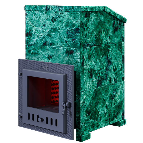 GFS ЗК 18 (М) - печь с усиленной каменкой большей массы, с единым углублением внутрь топки для дополнительной укладки чугунного заряда. Теплосъемные шипы, со стороны горения пламени, в разы увеличивают площадь соприкосновения огня с каменкой и ускоряют передачу тепла, а также способствуют лучшему дожигу смешивая потоки пламени и воздуха поступаемого из воздушника. Эти усовершенствования значительно повышают мощность парообразования печи и выдают большее количество пара при непрерывной подаче воды. Каменка печей GFS-ЗК является незаливаемой.