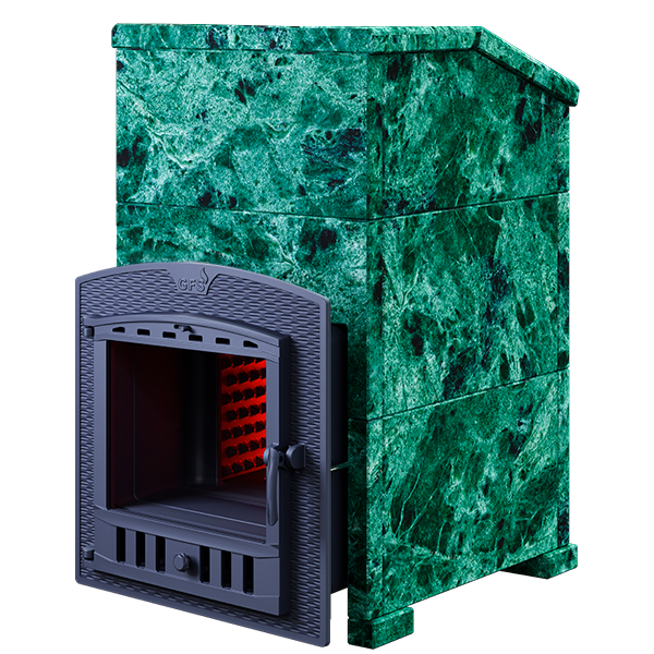 GFS ЗК 18 (П2) - печь с усиленной каменкой большей массы, с единым углублением внутрь топки для дополнительной укладки чугунного заряда. Теплосъемные шипы, со стороны горения пламени, в разы увеличивают площадь соприкосновения огня с каменкой и ускоряют передачу тепла, а также способствуют лучшему дожигу смешивая потоки пламени и воздуха поступаемого из воздушника. Эти усовершенствования значительно повышают мощность парообразования печи и выдают большее количество пара при непрерывной подаче воды. Каменка печей GFS-ЗК является незаливаемой.