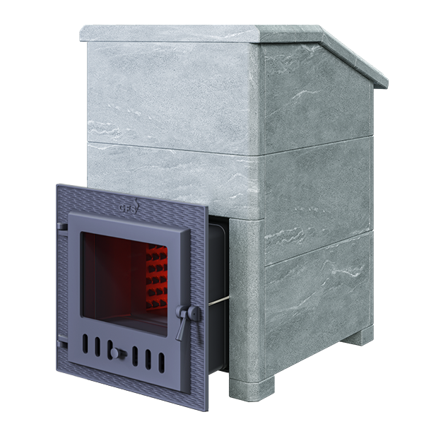 GFS ЗК 30 (М) - печь с усиленной каменкой большей массы, с единым углублением внутрь топки для дополнительной укладки чугунного заряда. Теплосъемные шипы, со стороны горения пламени, в разы увеличивают площадь соприкосновения огня с каменкой и ускоряют передачу тепла, а также способствуют лучшему дожигу смешивая потоки пламени и воздуха поступаемого из воздушника. Эти усовершенствования значительно повышают мощность парообразования печи и выдают большее количество пара при непрерывной подаче воды. Каменка печей GFS-ЗК является незаливаемой.