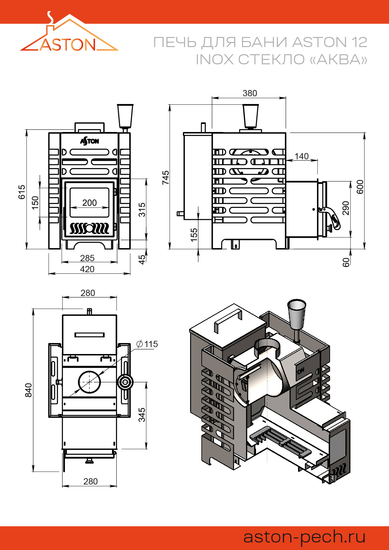 Диаметр дымохода, мм: 115