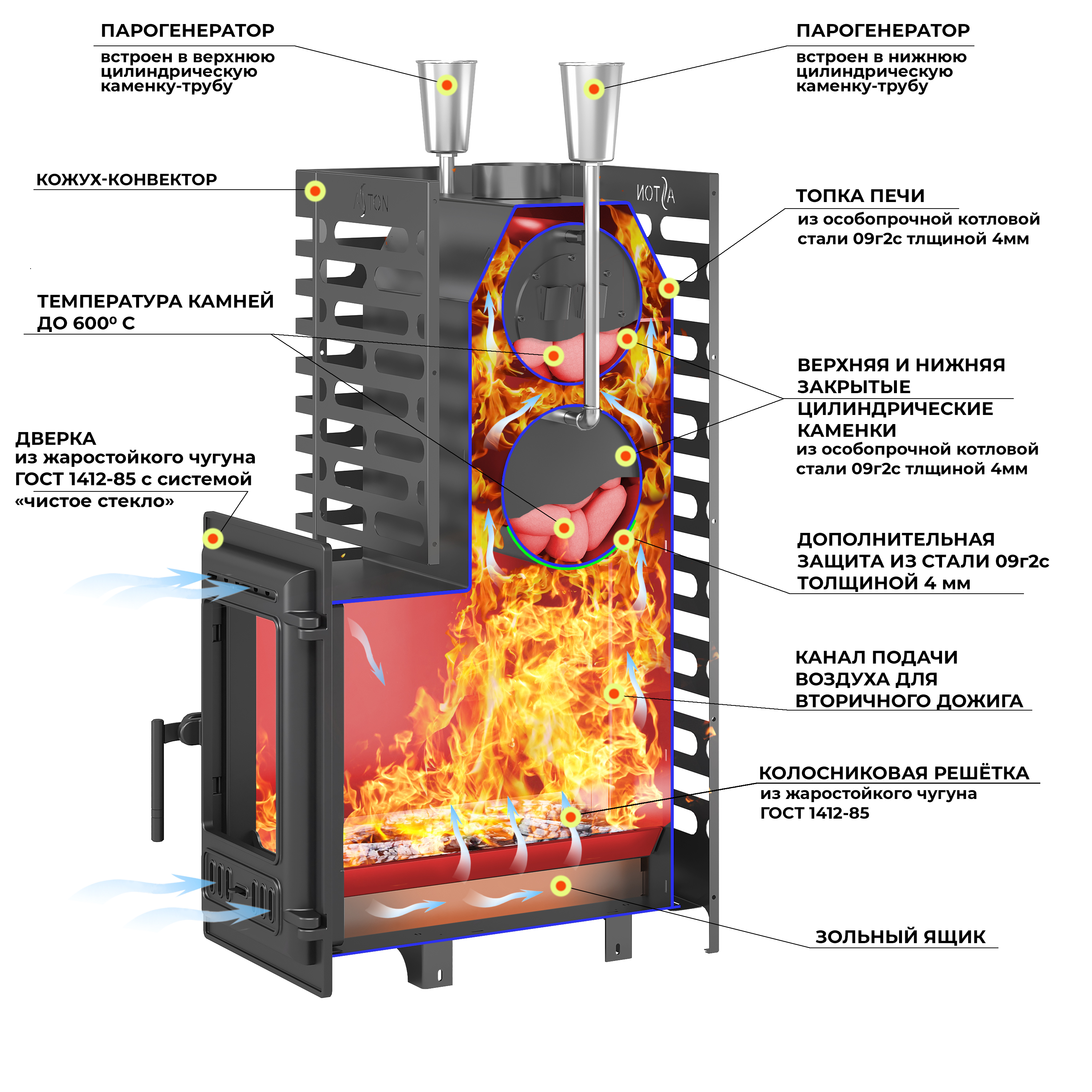 Материал закрытой каменки: особо прочная котловая сталь 09Г2С