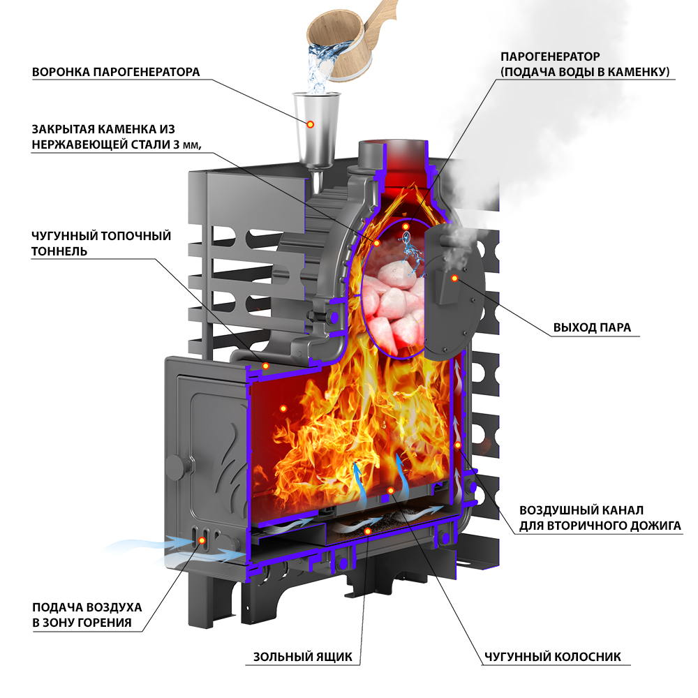 Материал закрытой каменки: нержавеющая сталь AISI 430
