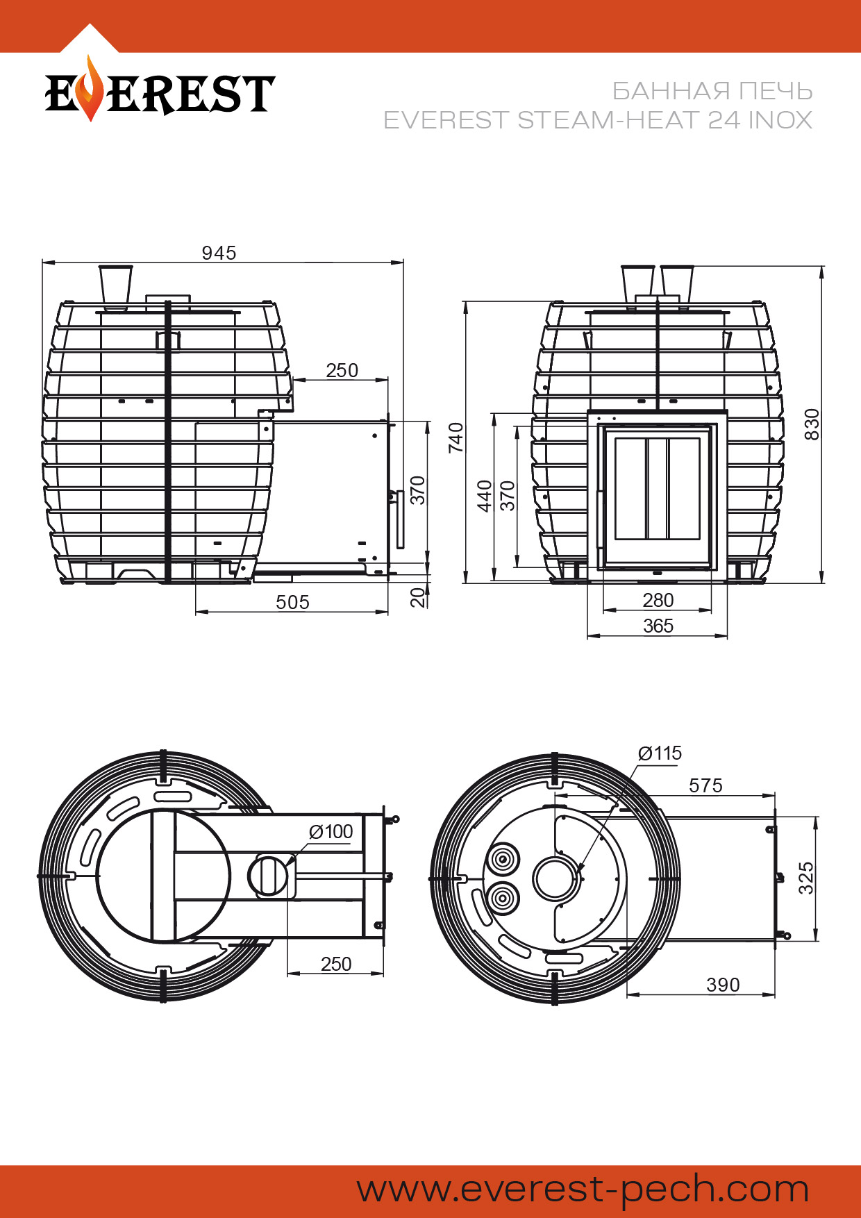 Нержавеющая сталь толщиной 24 мм, интегрированная каминная дверка, системы чистое стекло, вторичный дожиг, неповторимый дизайн и звук вьюги. Всё это - про новую печь для бани Эверест Steam-Нeat 24 INOX.