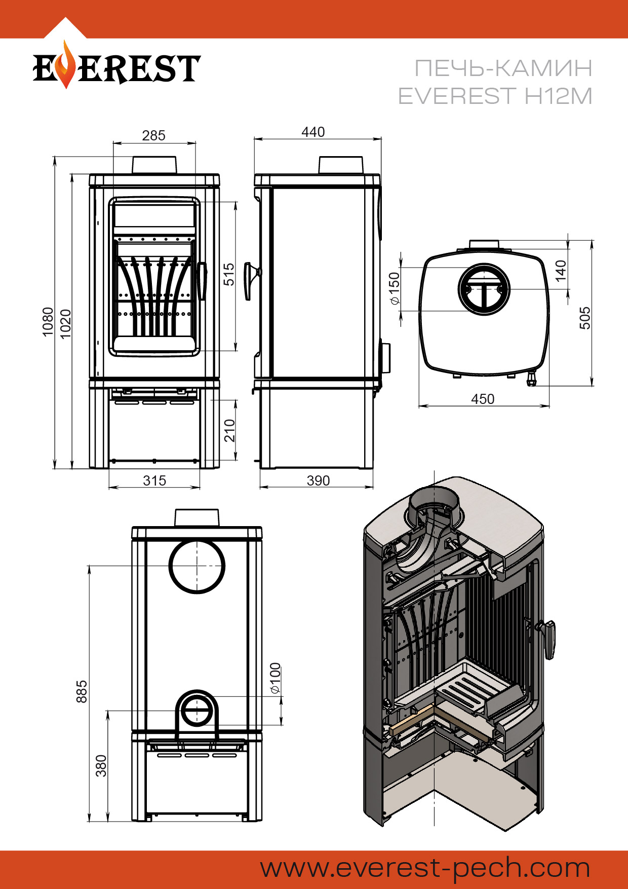 Диаметр дымохода: 150 мм